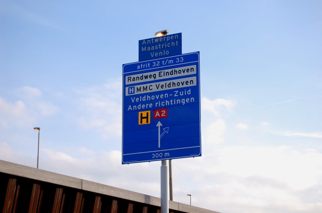 | In tegenstelling tot de andere nieuwe borden, waar werd volstaan met de tekst "Andere richtingen" en de nog komende afritnummers, wordt op dit rechtdoorbord ook aan vooraankondiging gedaan. |