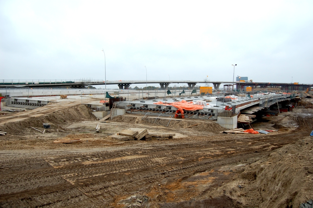 | De beide A2 hoofdrijbaanbruggen over de Dommel. KW 24 B (rechts) lijkt wat smaller dan KW 24 A. Hopelijk geen compromis waarbij de vluchtstrook zou komen te vervallen bij verbreding naar 3 rijstroken. |